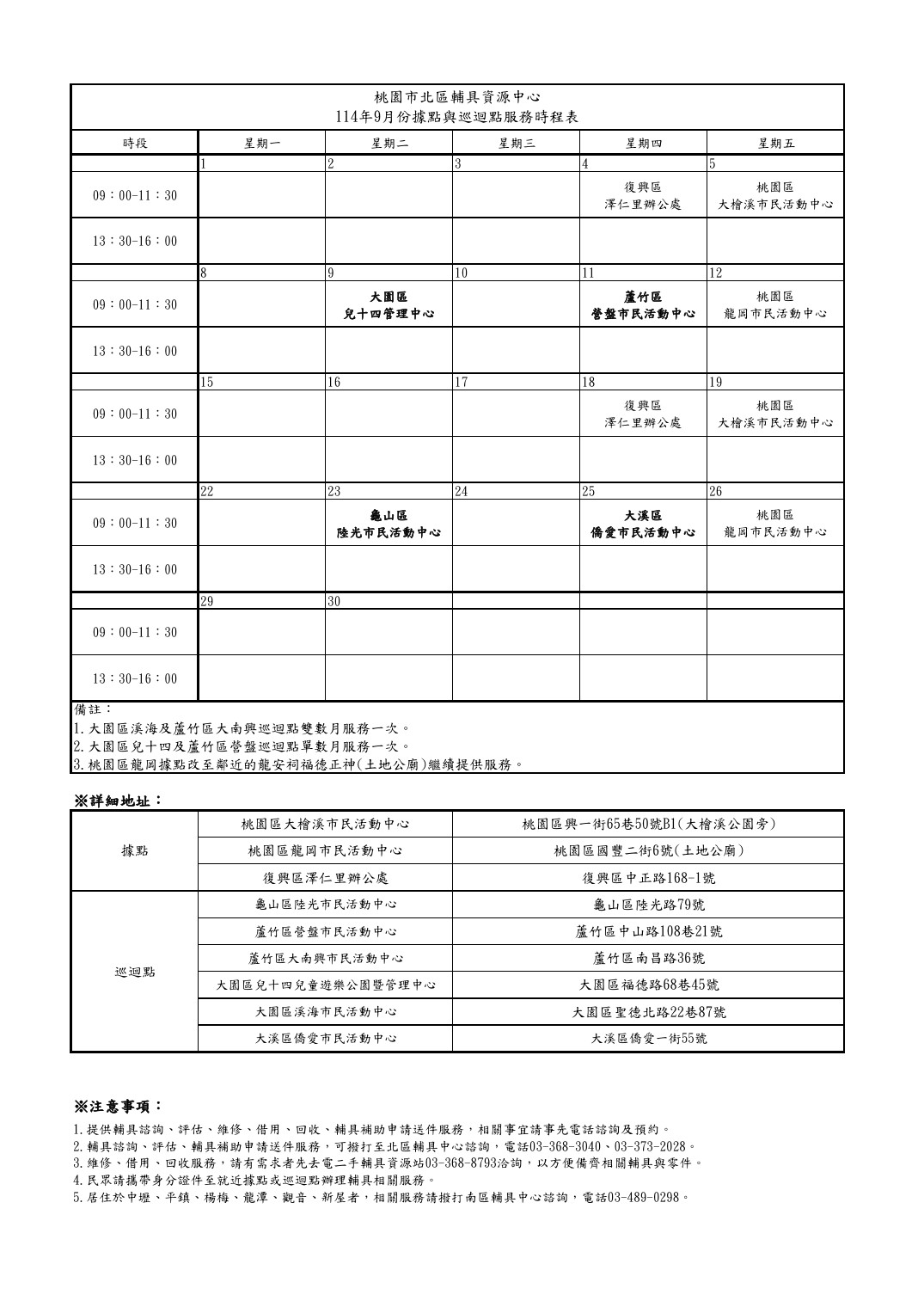 5.居住於中壢、平鎮、楊梅、龍潭、觀音、新屋者,相關服務請撥打南區輔具中心諮詢,電話03-489-0298。